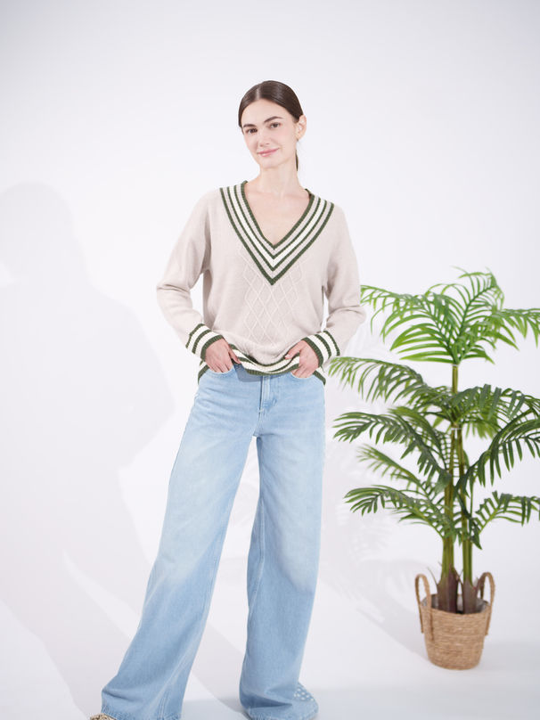 32 - Deep V Stripe Pullover